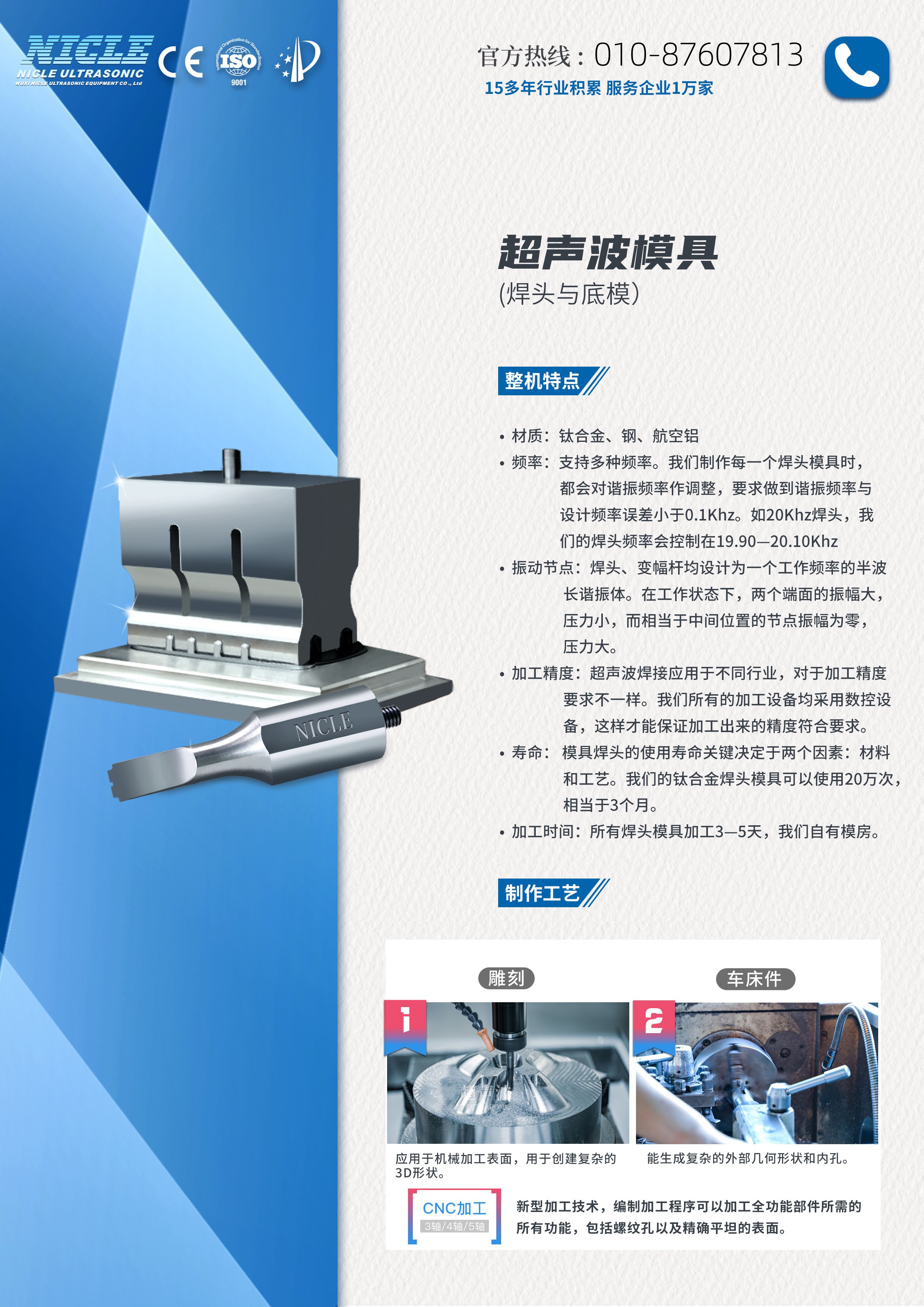 | 頻率:15/20/28/35/40khz | 根據(jù)焊接產(chǎn)品的不同設(shè)計不同模具 |